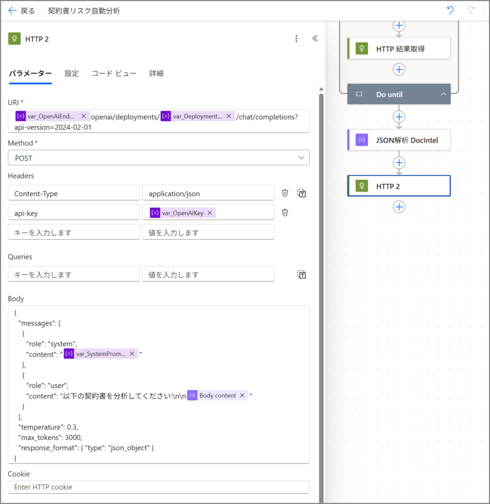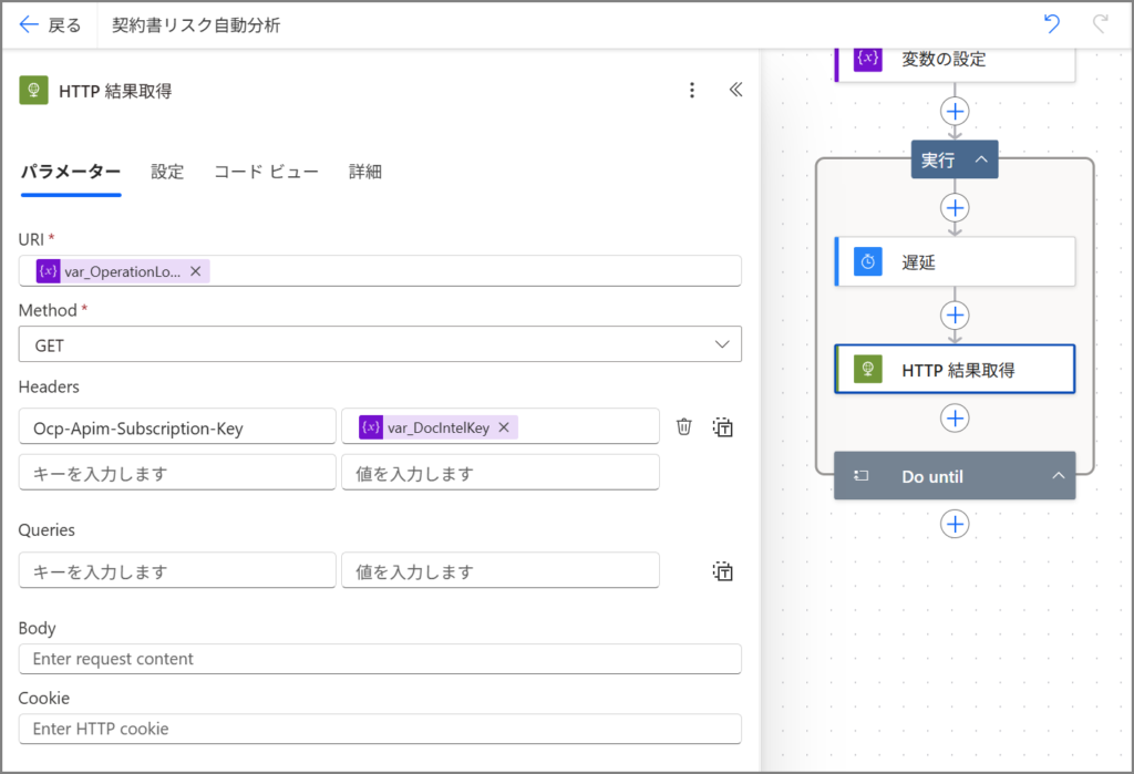 • 値(式として入力): @{variables('var_DocIntelKey')}