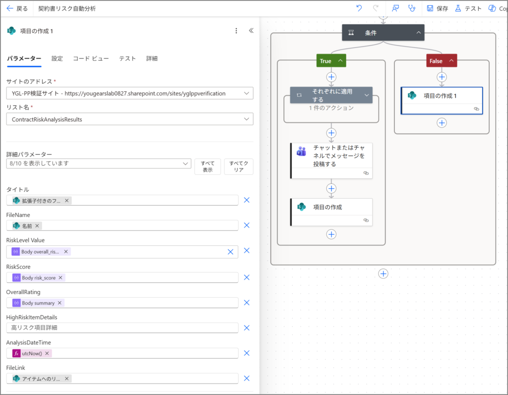 今回は、その結果を使って通知を送ったり、SharePointに記録したりする部分を作っていきます。