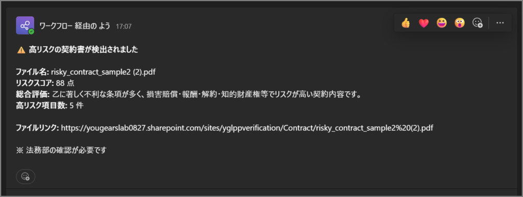 (Teamsに通知が飛んだ時、リンクをクリックすればすぐに契約書が開けるようになってます!便利!)