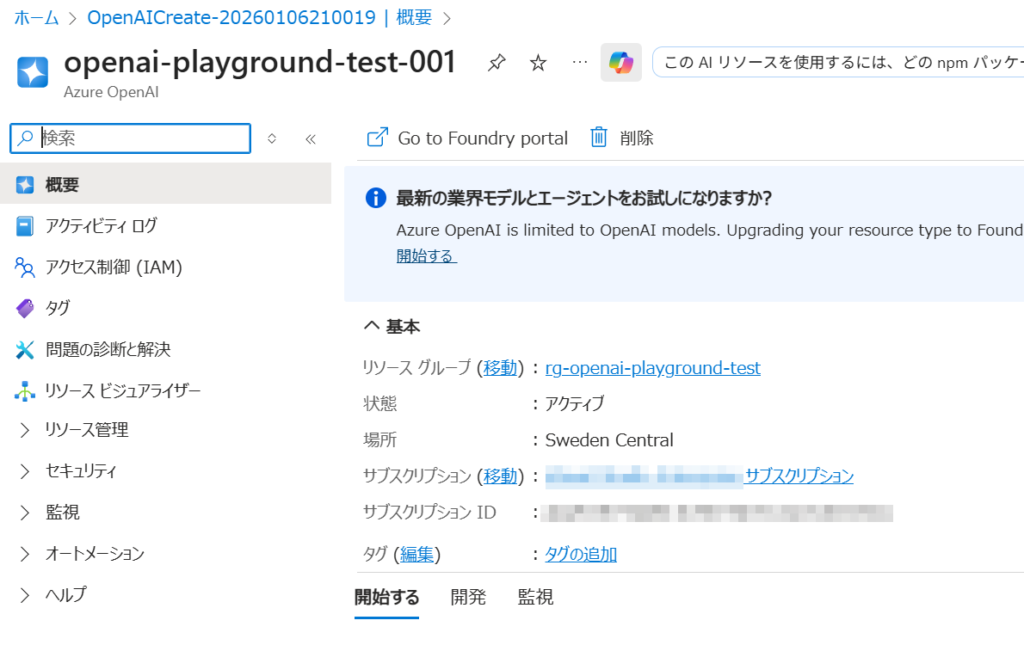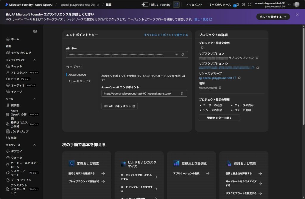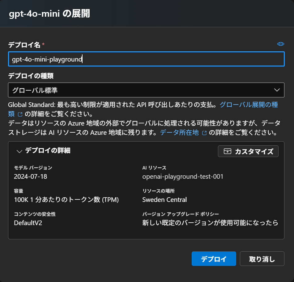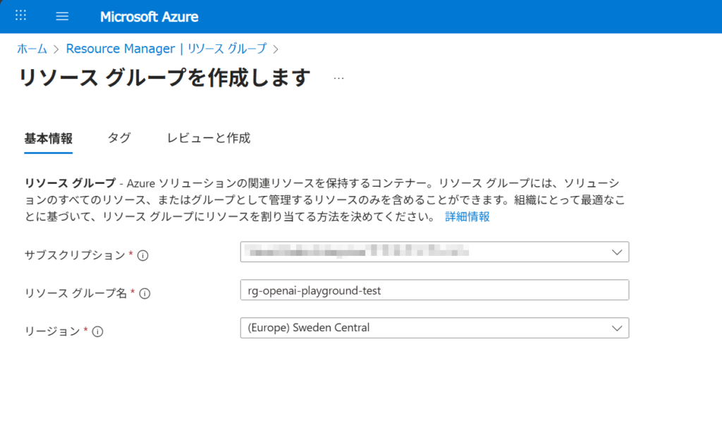 rg-openai-playground-test(Step 1で作成したもの) - リージョン: リソースグループと同じリージョン