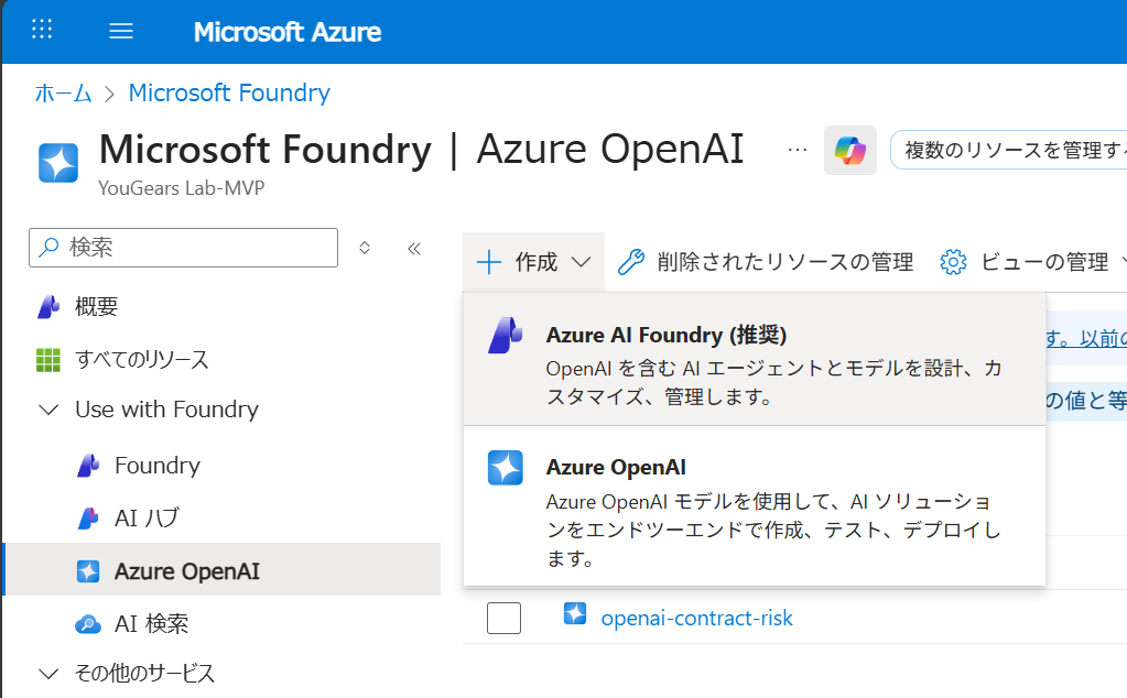 ⚠️ 注意: 「Azure AI Foundry(推奨)」ではなく、「Azure OpenAI」の方を選んでくださいね!