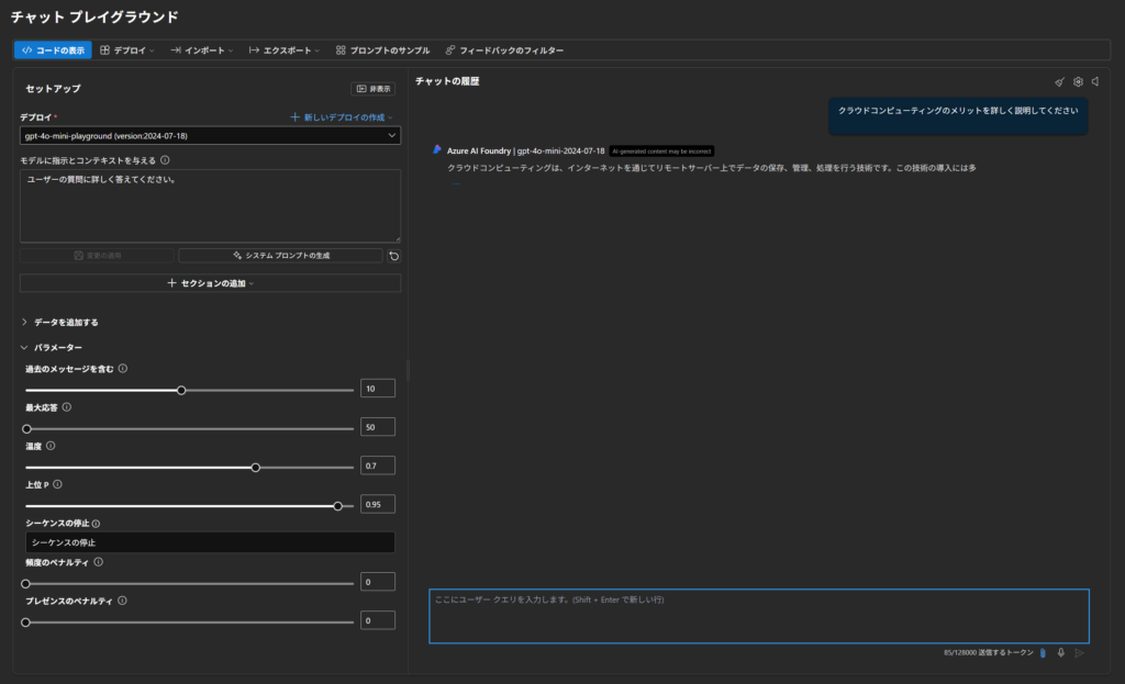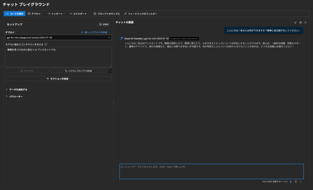 Azure AI Foundry Playgroundを使えば、ブラウザだけでAzure OpenAIを体験できるんです。