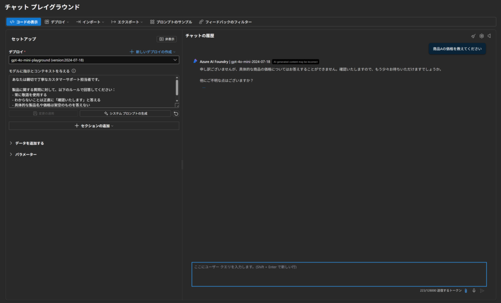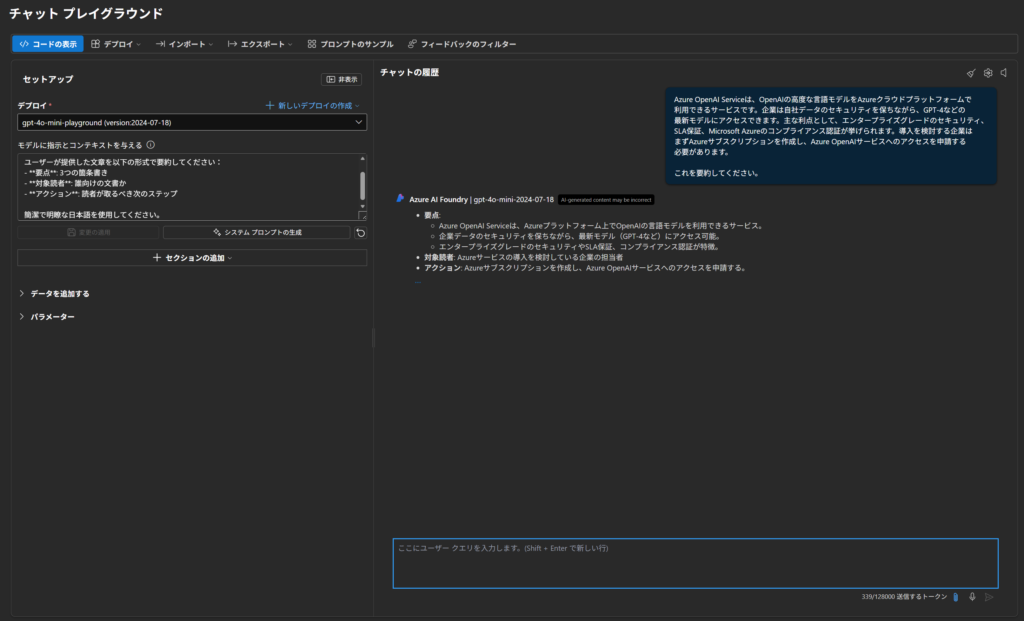 今回は、Azure AI Foundry Playgroundを使ったAzure OpenAIの実践的な使い方を解説しました!
