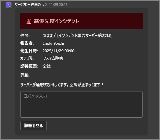 さらに、アクションが必要な場合はアダプティブカードを活用しましょう!
