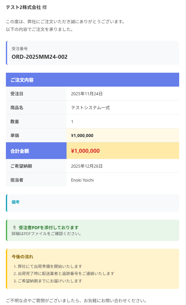 <h2 style="margin: 0;">受注確認のお知らせ</h2>