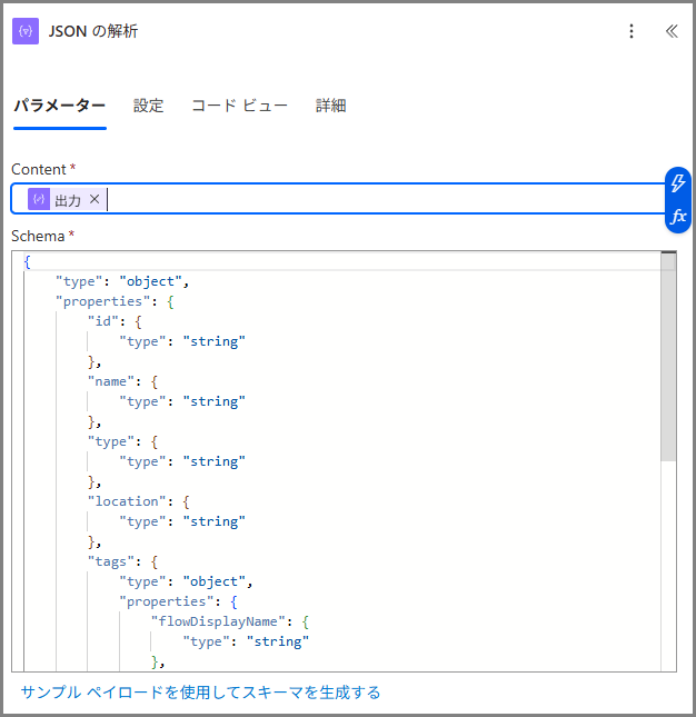 **フロー名:** @{body('JSON解析')?['tags']?['flowDisplayName']}