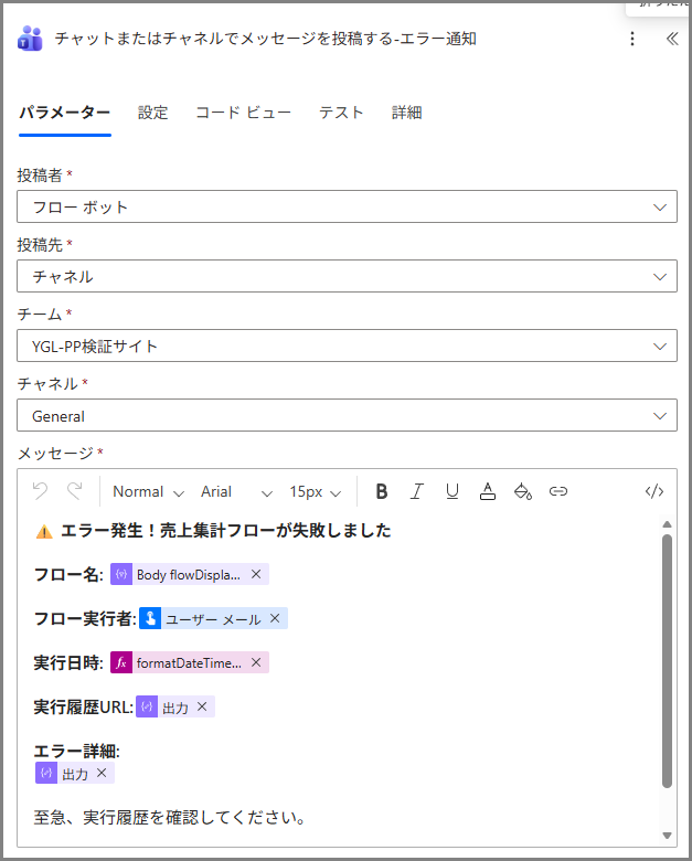 最後に、これらを使ってTeams通知やメール通知を作ります。